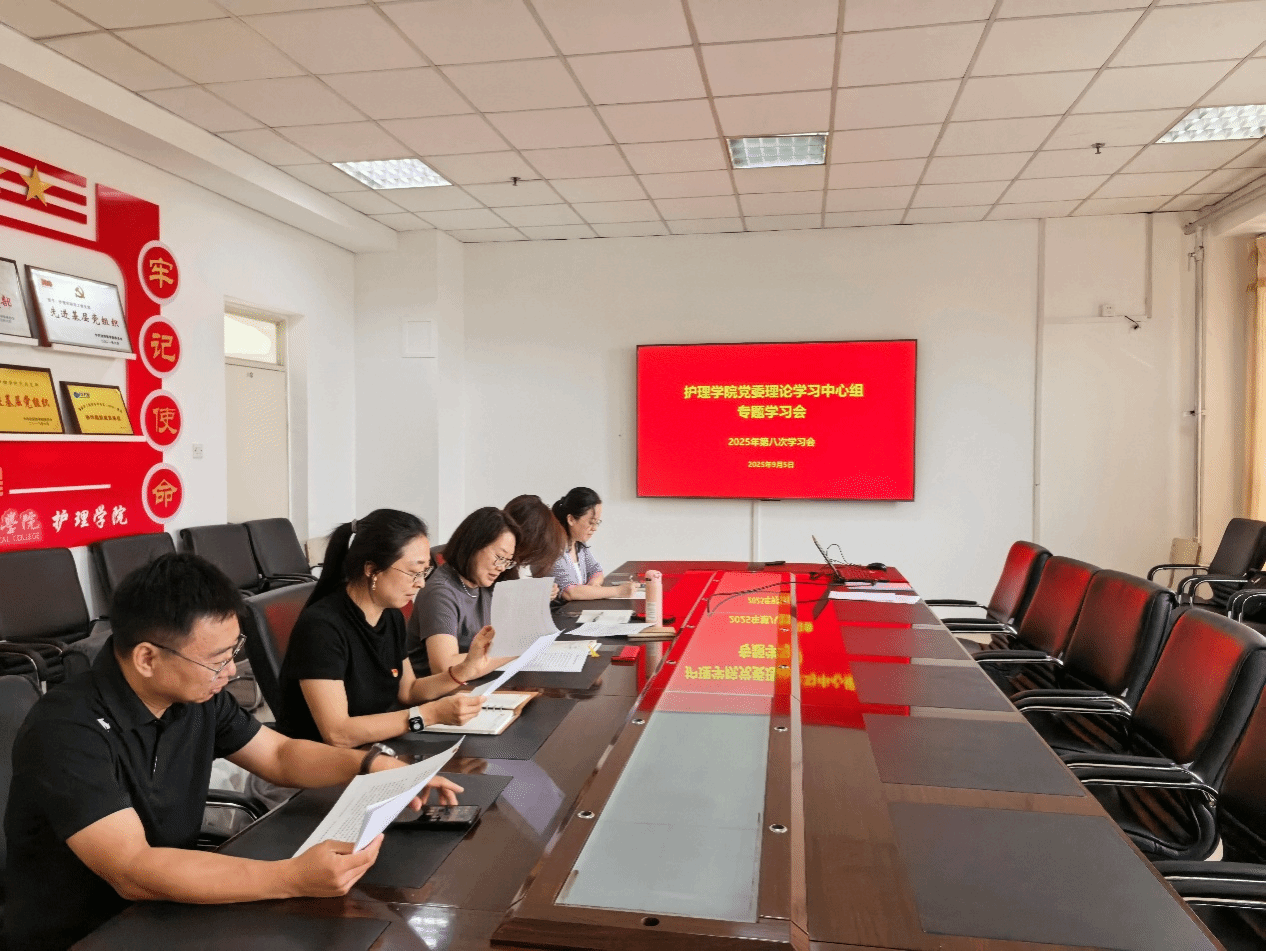9月5日下午,护理学院党委召开党委理论学习中心组第八次学习会。会议深入学习贯彻习近平文化思想、习近平总书记关于意识形态工作的重要论述、习近平总书记关于安全生产的重要讲话和指示批示精神、习近平总书记关于加强和改进民族工作的重要思想等,把维护意识形态安全作为重要政治任务摆在突出位置,为学院、学校各项事业高质量发展营造良好环境。学院领导班子成员参加学习会,学院党委书记叶琳主持会议并讲话。