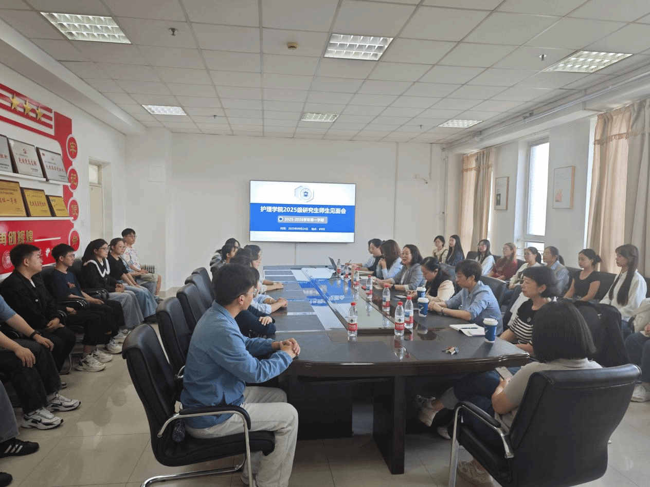 9月24日下午,护理学院 2025级硕士研究生新生师生见面会在博学楼B座502会议室举行。此次师生见面主题为“循护理发展之脉,筑研途启航之梦”。会议由学院科研科科长潘汝池主持,郭宏院长、赵冰副院长、仝慧娟副院长、胡静副院长及全体护理硕士生导师出席会议,全体34名研究生新生齐聚现场,共同参与这场意义非凡的入学 “第一课”。
