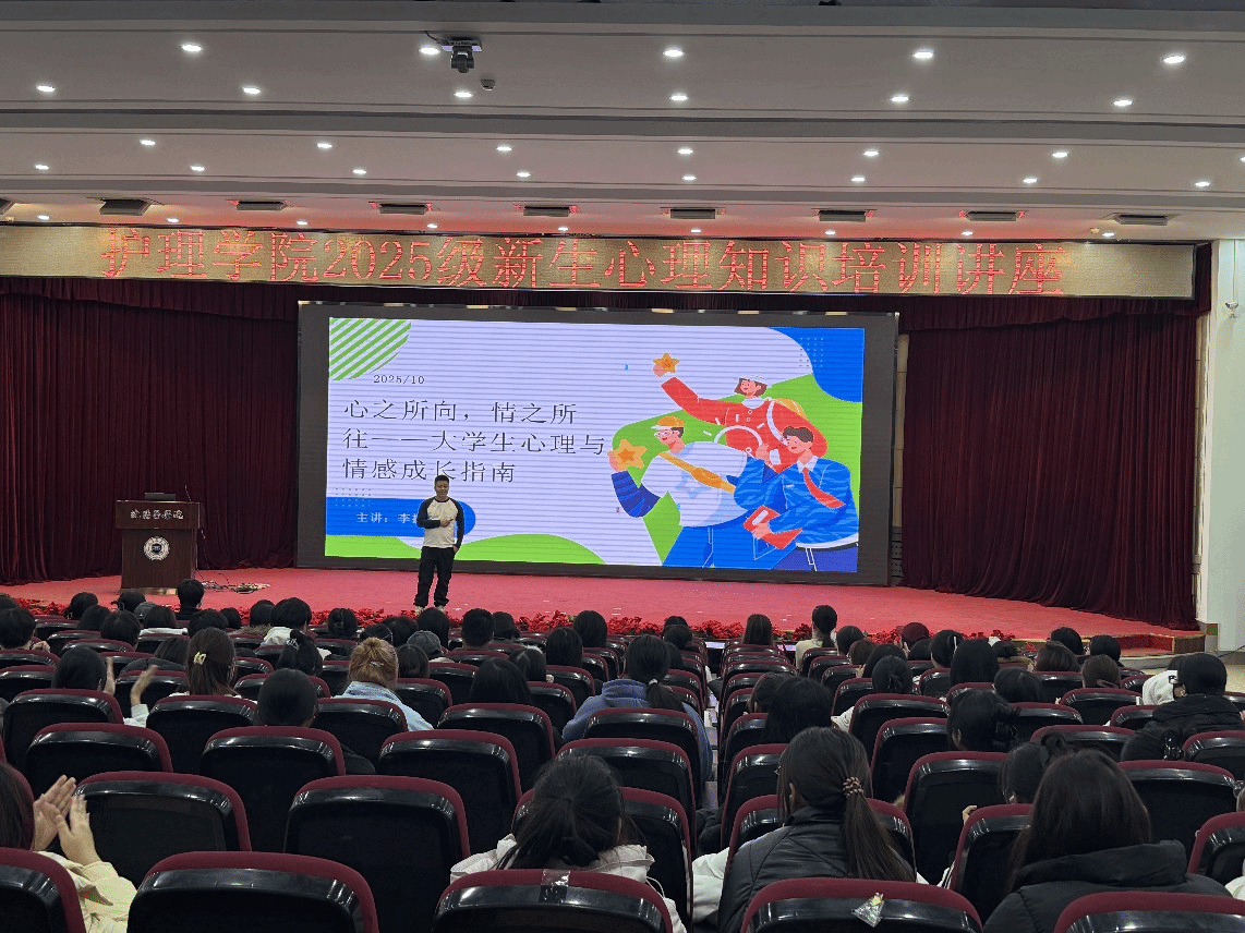 为帮助2025级新生快速适配大学护理专业学习节奏,化解入学适应期心理困惑,筑牢职业成长心理素养根基,11月20日,护理学院于图书馆六楼学术报告厅面向全体新生开展心理知识培训讲座。活动特邀高校心理健康教育中心资深讲师李振东主讲,现场座无虚席,互动氛围热烈。
