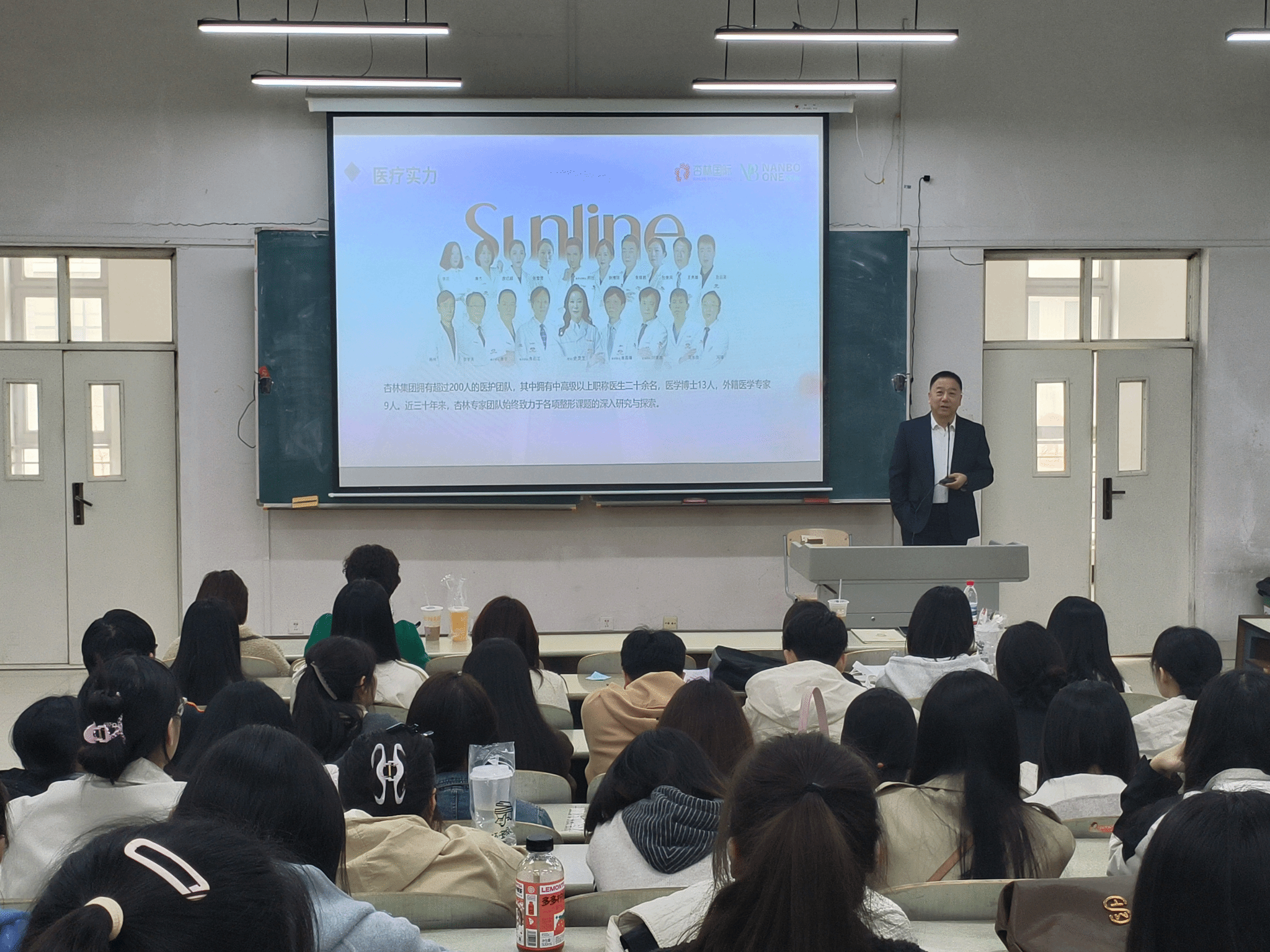 宣讲会上,楠波湾整形外科医院院长王佳从医院发展历程、核心优势及行业定位出发,全面介绍了楠波湾整形外科医院的发展概况。他重点讲解了医院在业态布局、技术实力、国际合作等方面的突出优势——涵盖医美、抗衰、康养、文旅等全生命周期健康管理链,让在场同学对医院的实力与发展前景有了全面认知。