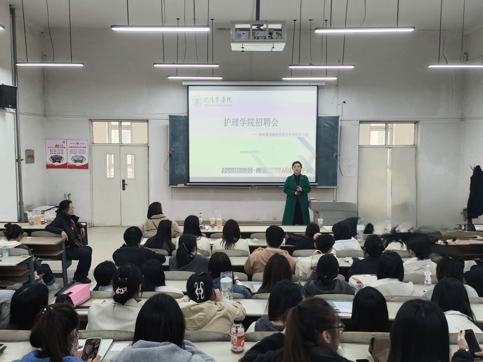 为拓宽护理学院学生就业渠道,搭建校企精准对接桥梁,3月26日下午,杏林集团楠波湾整形外科医院专场招聘宣讲会在我校顺利举行。医院行政院长王佳、护理部主任张莹等一行人为护理学院全体毕业生带来行业解读、岗位推介与职业指引,学院相关负责人、辅导员及百余名护理学生参加了此次活动。